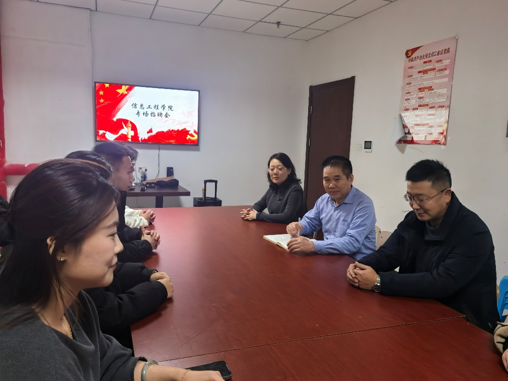 为进一步推动2026届毕业生就业工作,搭建学生与企业之间的沟通平台,助力学生顺利就业,近期,信息工程学院在综合楼S437举办了宁波宏洲金属材料有限公司专场招聘交流会,我院党总支副书记王明印、就业辅导员姚惠文及全体2026届毕业生参与本次招聘会。