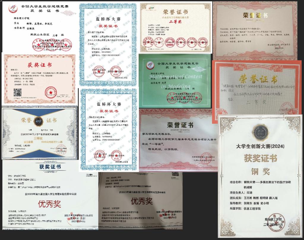 在竞赛赛道上,他以赛促学、以赛促练。2023 年至今,先后参与十余项高水平赛事,从软件测试到数学建模,从物理实验到嵌入式开发,在一次次竞争中积累经验、弥补不足。其中,在全国大学生数学建模竞赛中,他与团队成员熬夜钻研技术方案,反复调试模型代码,最终斩获省级二等奖;在蓝桥杯单片机竞赛中,他凭借扎实的硬件操作与编程能力,获评省级三等奖。这些经历不仅提升了他的专业技能,更培养了他迎难而上、团队协作的精神。