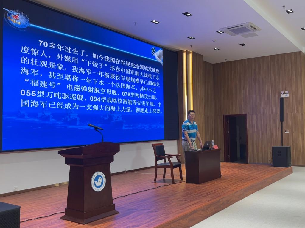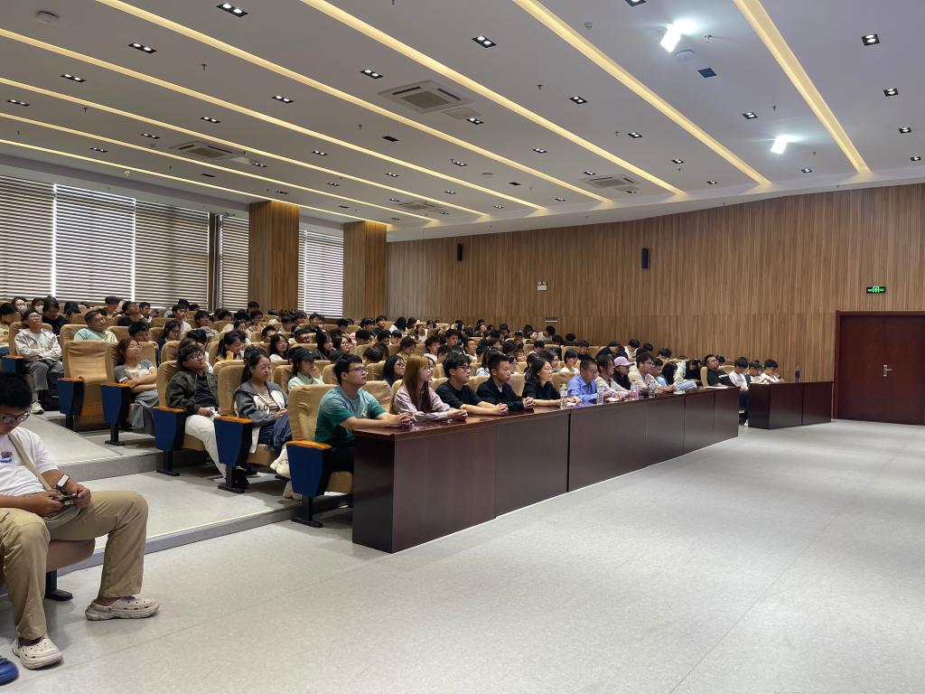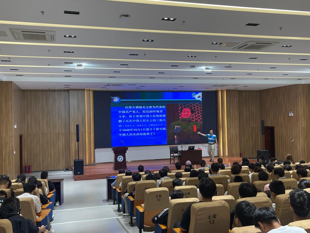 为深入贯彻国防教育精神,引导新生厚植家国情怀、增强国防意识,9 月 29 日上午,信息工程学院于综合楼六楼学术报告厅开展“仰望星空 脚踏实地争做新时代爱国有为的优秀大学生”国防教育讲座。本次讲座由烟台理工学院经济管理学院盖玉华博士主讲,信息工程学院党总支副书记王明印、团总支书记祝箐、全体辅导员及 2025 级新生共同参加。