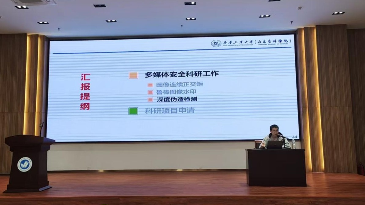 在汇报过程中,王教授紧密围绕“多媒体安全领域研究进展”与“国家(省级)科研项目申请要点”两大核心板块展开深入分享。其中,“多媒体安全领域研究进展”板块紧扣当前网络空间安全需求与学术前沿方向,融入其团队在图像特征提取、数字水印优化、深度伪造检测等方向的实测数据与创新成果;“国家(省级)科研项目申请要点”板块则基于其多次成功获批基金项目的实战经验,不仅系统解读领域内技术发展动态与科研选题方向,更针对申报中易忽略的逻辑梳理、材料打磨等关键环节拆解核心思路,为在场全体教师及学生提供兼具理论深度与实践指导性的专业解读,助力其更加清晰地把握科研与申报的内在关联。