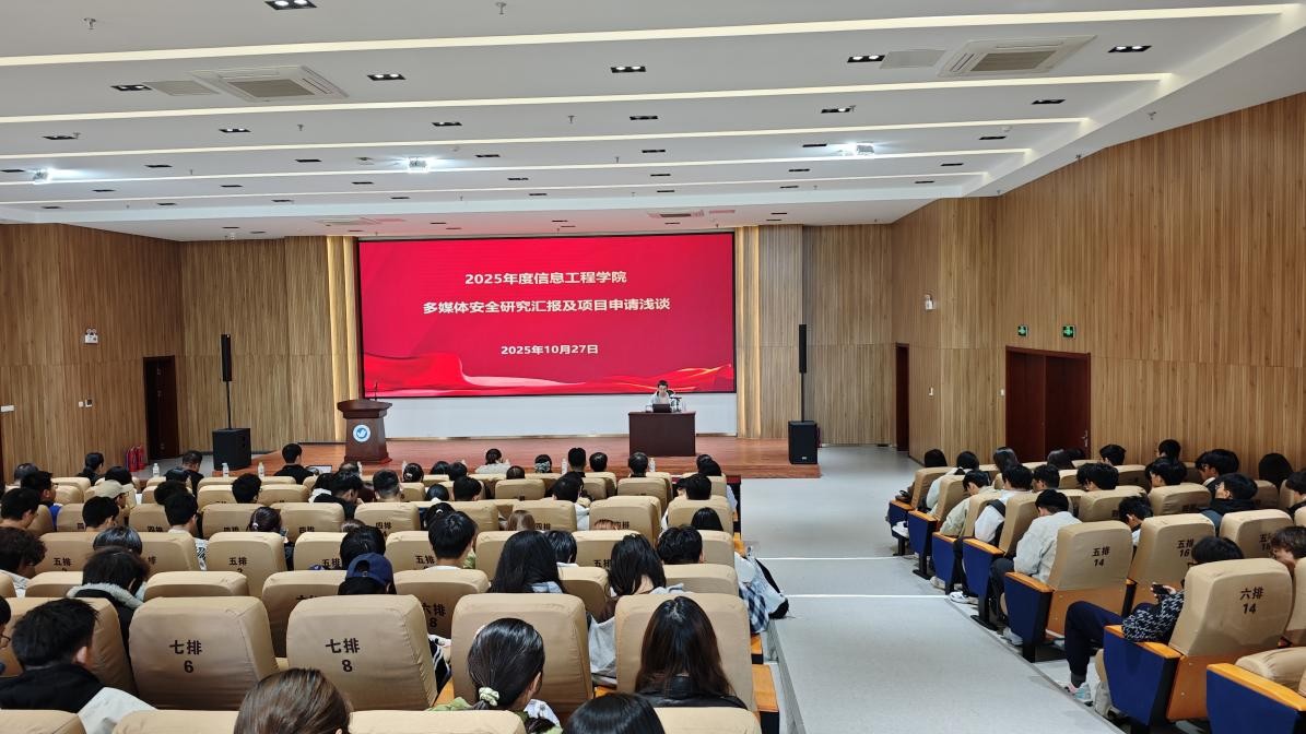 为提升学院教师在多媒体安全领域的科研创新能力,助力国家(省级)科研项目申报工作,加强学术前沿交流与学科建设,10月27日下午,信息工程学院在综合楼六楼报告厅举办多媒体安全研究汇报及项目申请学术报告。会议特邀齐鲁工业大学王春鹏教授作专题汇报,学院副院长康凤主持会议,学院全体教师及学生参加。