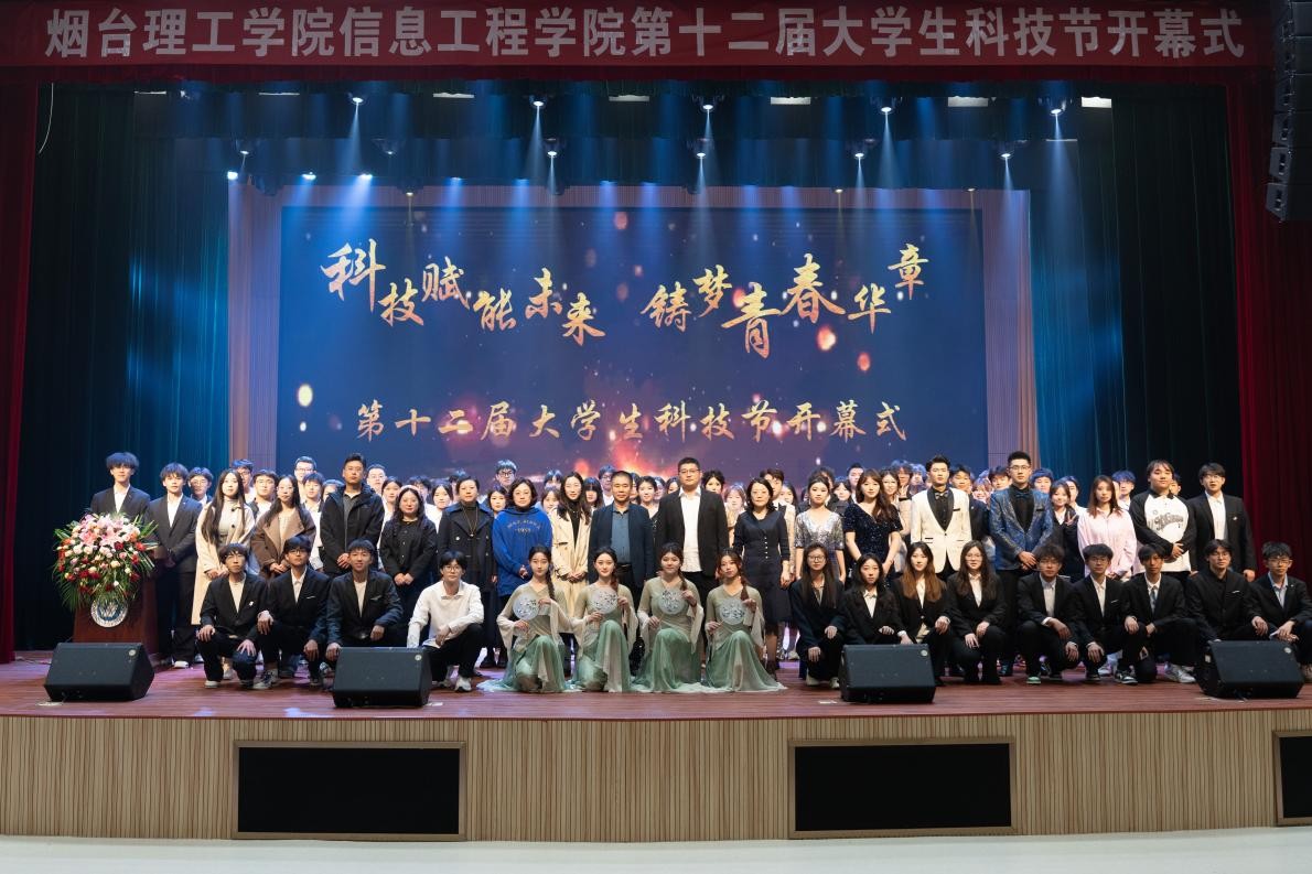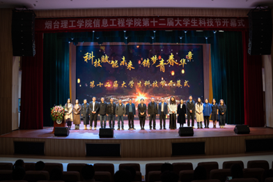 为培养大学生科技创新思维,点燃青年学子科创奋进热情,11月14日晚,信息工程学院第十二届大学生科技节开幕式于综合楼一楼多功能厅拉开帷幕。烟台理工学院校长助理杜娟、校长助理徐雪峰,学生处处长申海滨,电子电工实训中心主任秦庆磊,山东灵动鲸软件科技有限公司总经理彭洪浩,信息工程学院领导及全体辅导员、青年教师齐聚一堂,共同见证科技与青春的碰撞,开启科技创新的崭新征程。