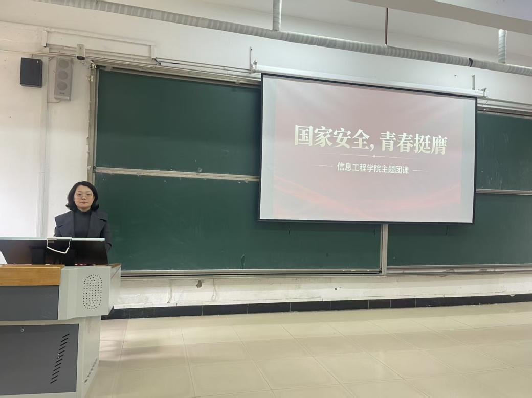 为深入贯彻总体国家安全观,强化共青团思想引领,筑牢青年学子国家安全意识,4月17日,信息工程学院于一教103教室召开“国家安全,青春挺膺”主题团课。学院党总支副书记王明印、团总支书记祝箐、全体辅导员老师及各年级学生代表参加活动。