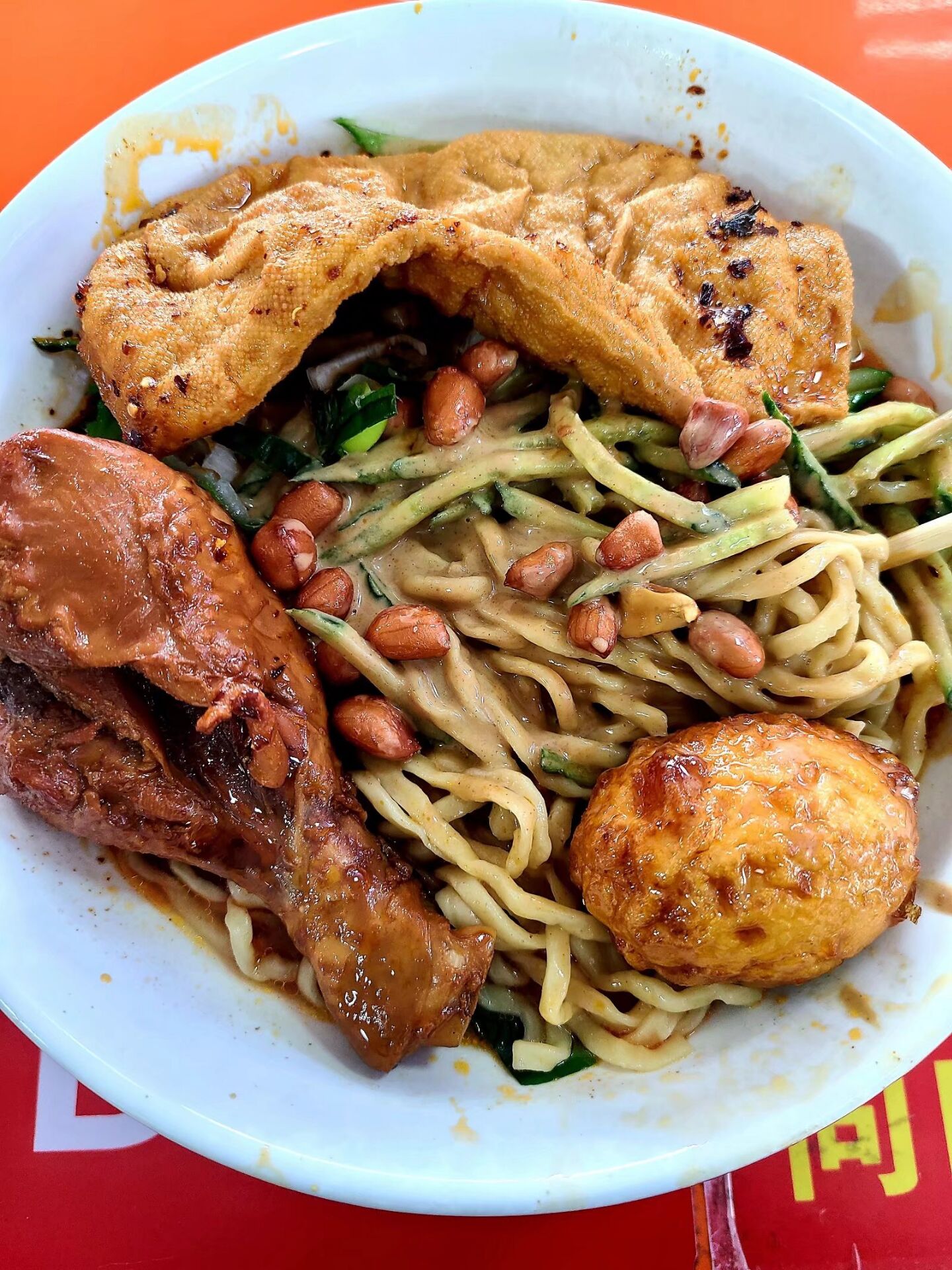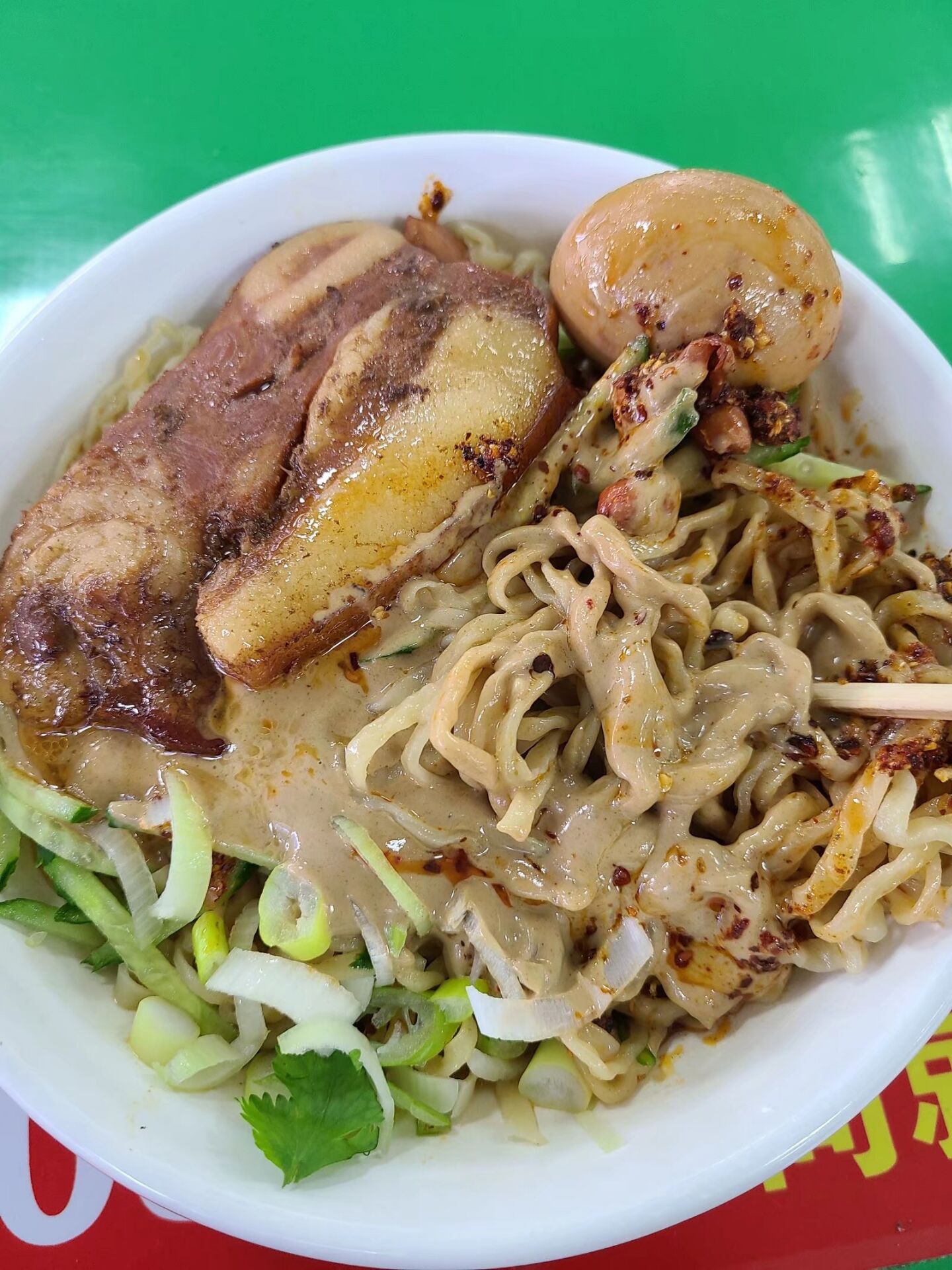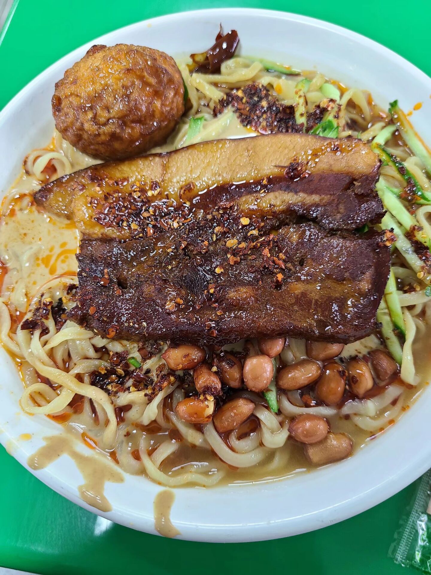 麻汁面,顾名思义就是在面上面撒上一层麻汁。在安徽牛肉板面的基础上会更好。配上葱花,麻油那简直是美味。经过了一个假期,超过50天没有尝到麻汁面的滋味,返校的第一天第一件事就是打听有没有麻汁面可以吃。当舍友集齐的那一天,不约而同的想起了麻汁面。四人齐聚麻汁面的地方,四碗不同配料的麻汁面,美味扑面而来。其实只是普通的面条,经过了他调配的麻汁后简直完美。加上一点辣椒和麻油后锦上添花,再加上一点香肠,豆皮,豆干,充足的面量绝对让所有人饱餐一顿。回味麻汁面,也品味我们的大学生活,我们不一样的青春年华。