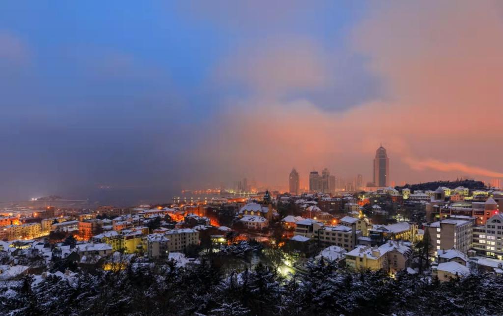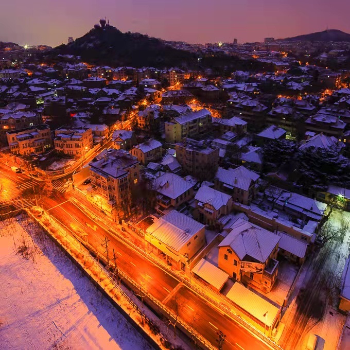 青岛的雪,始终是锦上添花。万家灯火通明之时,一场雪总是悄无声息地来,簌簌落下,那里极致皎洁的月光与一片雪白互相辉映,那种干净真是让人震撼,让人忍不住想了又想,念了又念。在安谧宁静的夜,寸寸土地在大雪的烘托下褪去了几分凌厉场,温柔又寂静。